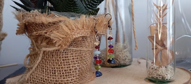 🌿 Cette paire de boucles d’oreilles est composée de perles chips en pierres naturelles soigneusement sélectionnées, chacune représentant un chakras.