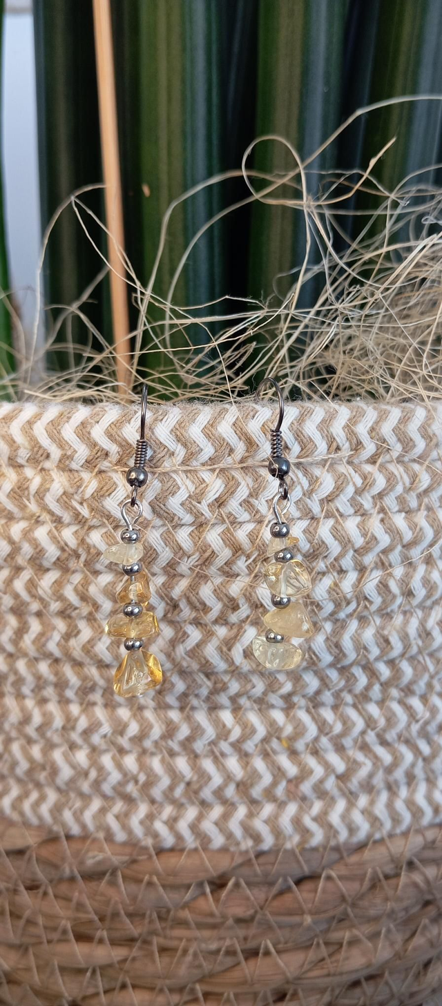 🌿 Chaque pierre, unique par sa forme et ses nuances jaune doré, met en valeur le caractère authentique et artisanal de ces créations.